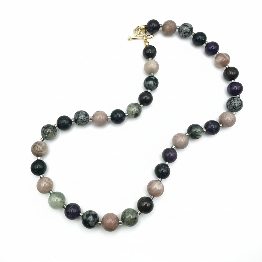 • Materials: A mix of genuine semi-precious gemstones and small metallic spacer beads for added definition.