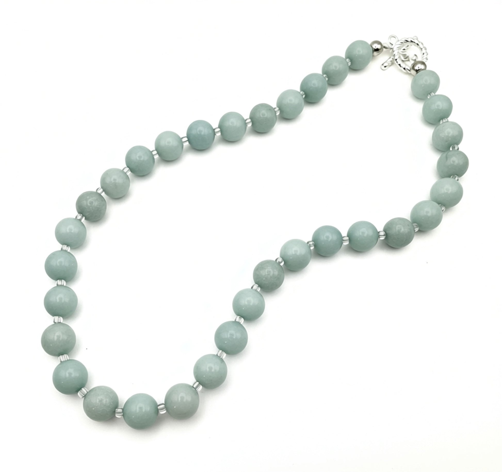 Sanna is a softly toned amazonite necklace designed to bring a sense of calm and ease to everyday wear. Hand-strung with smooth, natural amazonite beads in gentle sea-green hues, each piece celebrates the subtle variations that make it one of a kind.